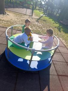 Wrześniowa aura sprzyja spacerom i zabawom w ogrodzie przedszkolnym. Dla naszego bezpieczeństwa wszyscy przypomnieliśmy sobie zasady ruchu drogowego i regulamin korzystania z placu zabaw . Dopóki będzie ciepło na pewno będziemy bawić się w promykach słoneczka , podziwiając zmiany w przyrodzie związane z nadchodzącą jesienią.