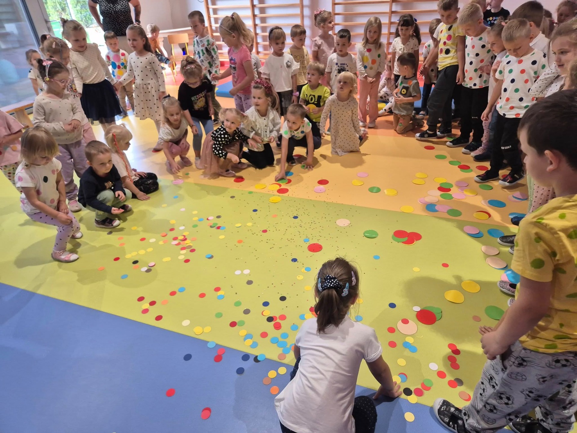 Każdy z nas ma w sobie twórczy potencjał, czasem lekko ukryty, czasem czekający na bodziec, na odpowiedni moment, by rozkwitnąć. Dzień Kropki, obchodzony 15 września, to wyjątkowe święto. To dzień kreatywności, odwagi, odkrywania własnych talentów, ale też cierpliwości i wytrwałości. To święto jest zainspirowane książką "Kropka" Petera H. Reynoldsa w której opisana jest historia dziewczynki Vashti, która uwierzyła, że nie ma talentu plastycznego, dopóki nauczycielka nie zachęciła jej, by "po prostu zrobiła kropkę". Ten prosty gest stał się początkiem jej twórczej podróży i odkrywania własnych możliwości. Ta historia uświadamia, jak ogromną rolę w procesie edukacji odgrywa postawa nauczyciela. Zamiast zwrócić uwagę na brak starań, nauczycielka wybrała wsparcie i zachętę, które otworzyły w dziecku drzwi do świata kreatywności. Dzień Kropki, to przypomnienie dla nas wszystkich, że jedno słowo uznania czy drobny gest akceptacji może zmienić podejście ucznia do samego siebie i jego możliwości. W naszym przedszkolu to święto obchodziliśmy po raz pierwszy i nie ostatni, bowiem już na stałe zagości w harmonogramie naszych imprez . Celem jest przede wszystkim