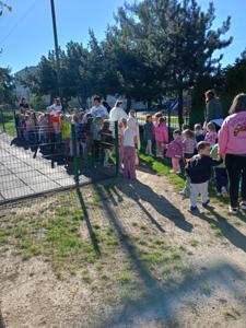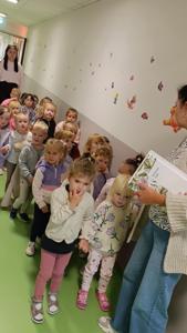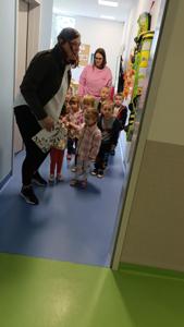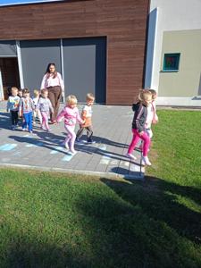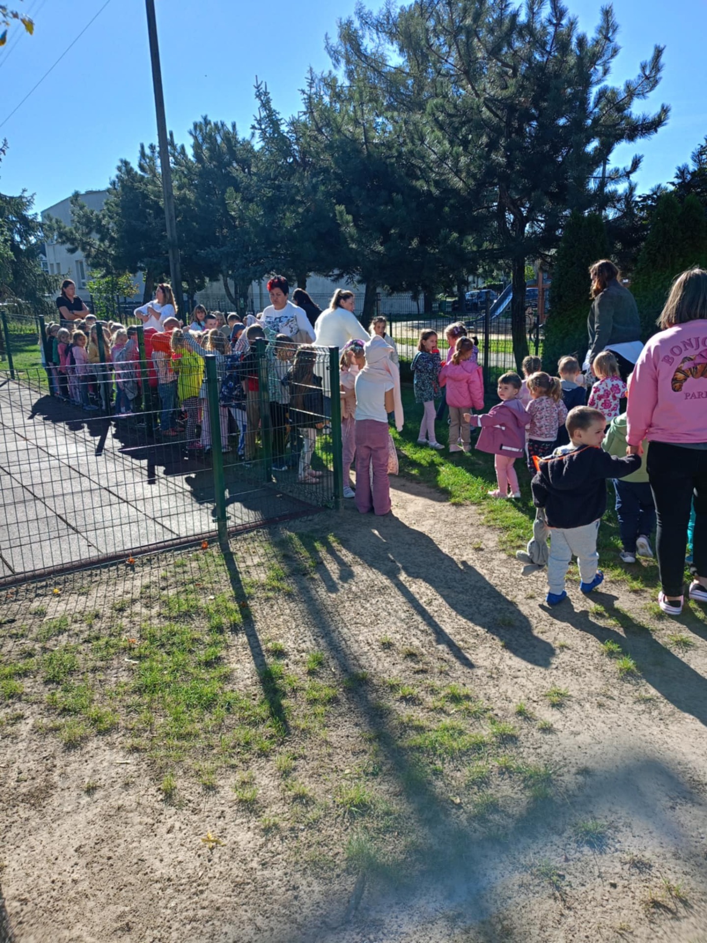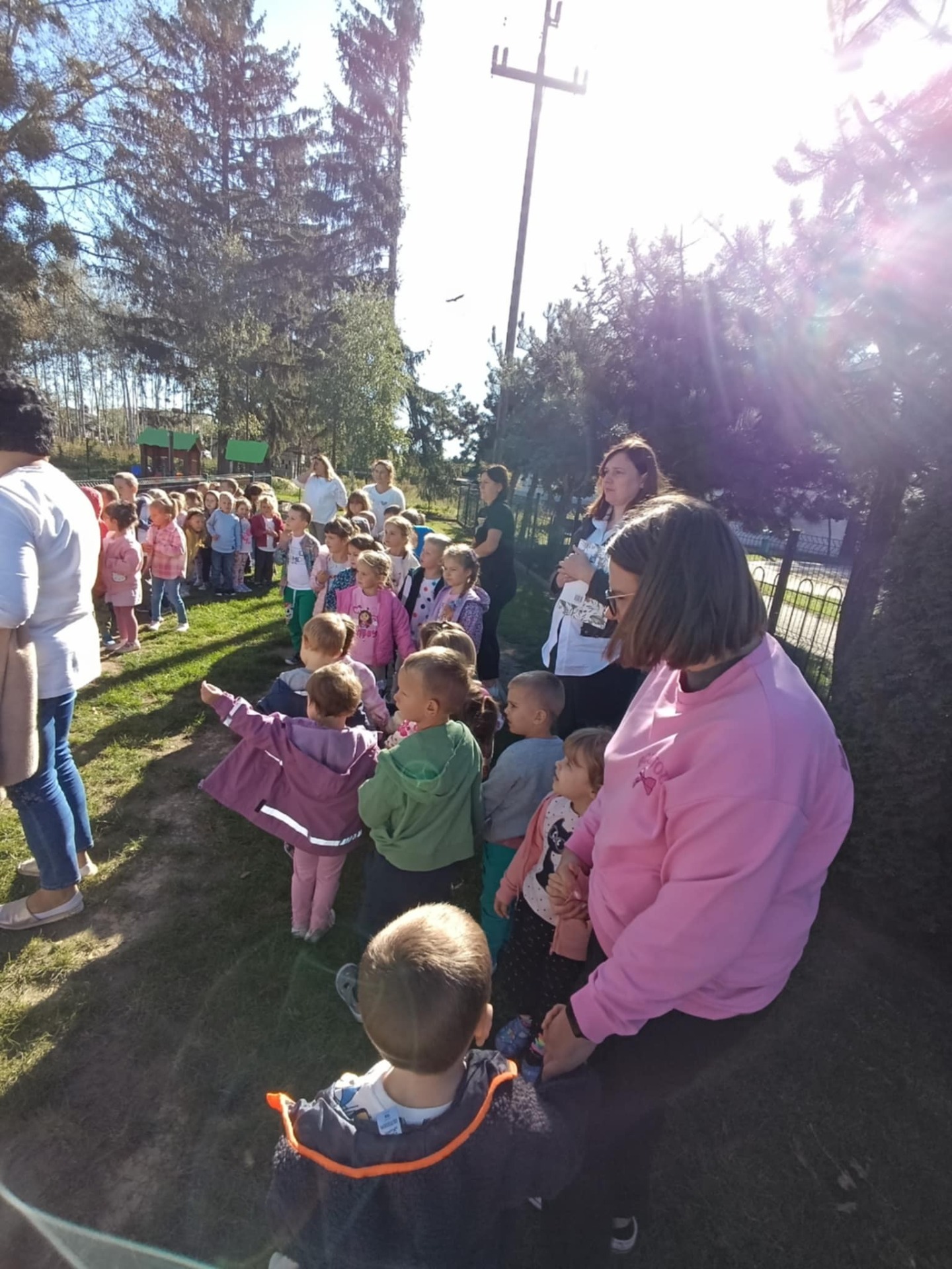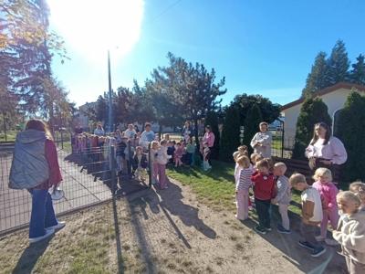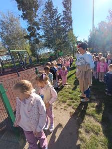 Nauczyciele informują dzieci, aby przerwały dotychczasowe zajęcia i ustawiły się w pary.