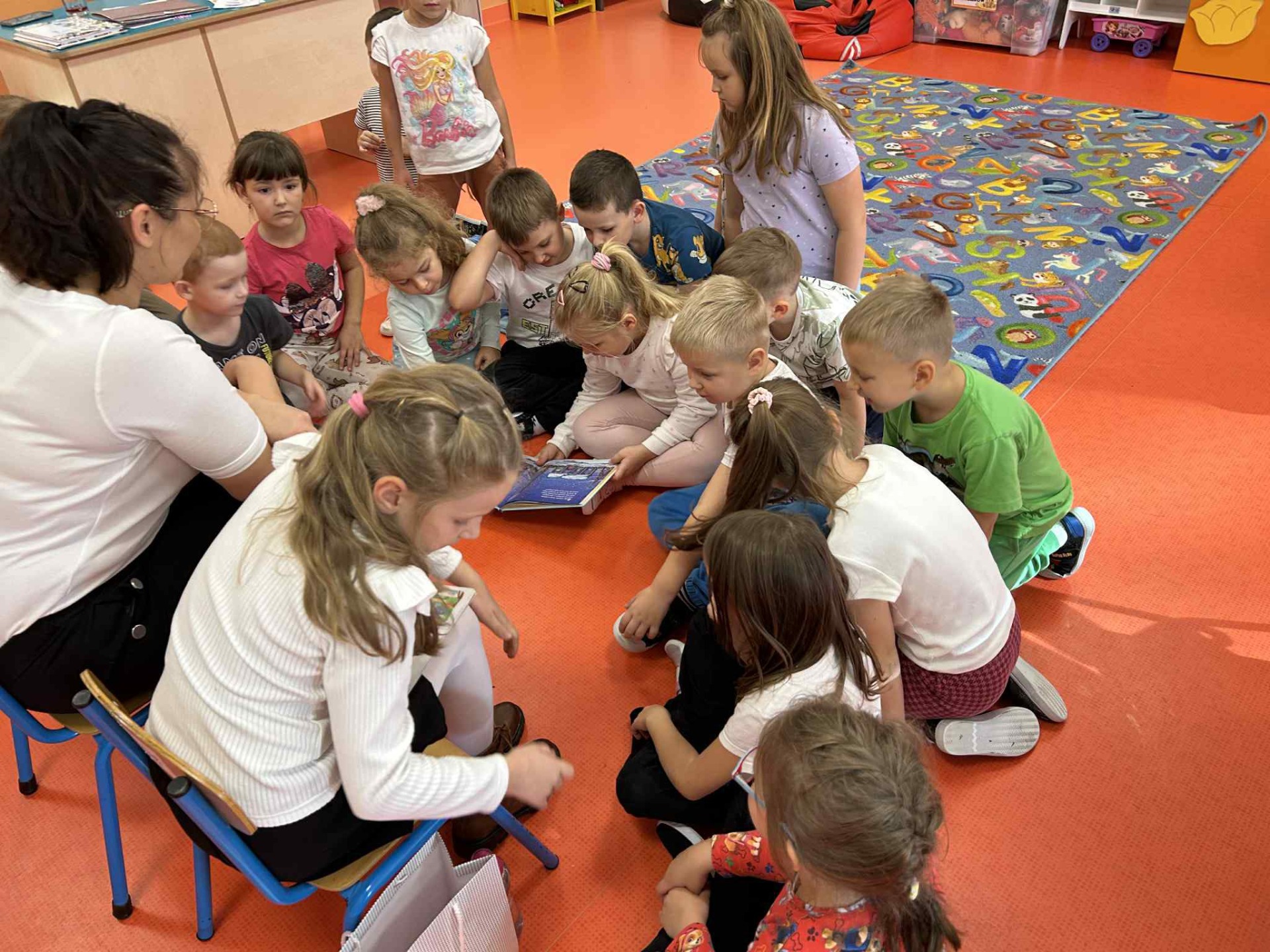 Do akcji dołączyła również nasza absolwentka Oliwka, która z dumą wróciła do przedszkola, by poczytać swoim młodszym kolegom i koleżankom. Dzieci słuchały z zaciekawieniem, a Oliwka pokazała, że miłość do książek można pielęgnować od najmłodszych lat!