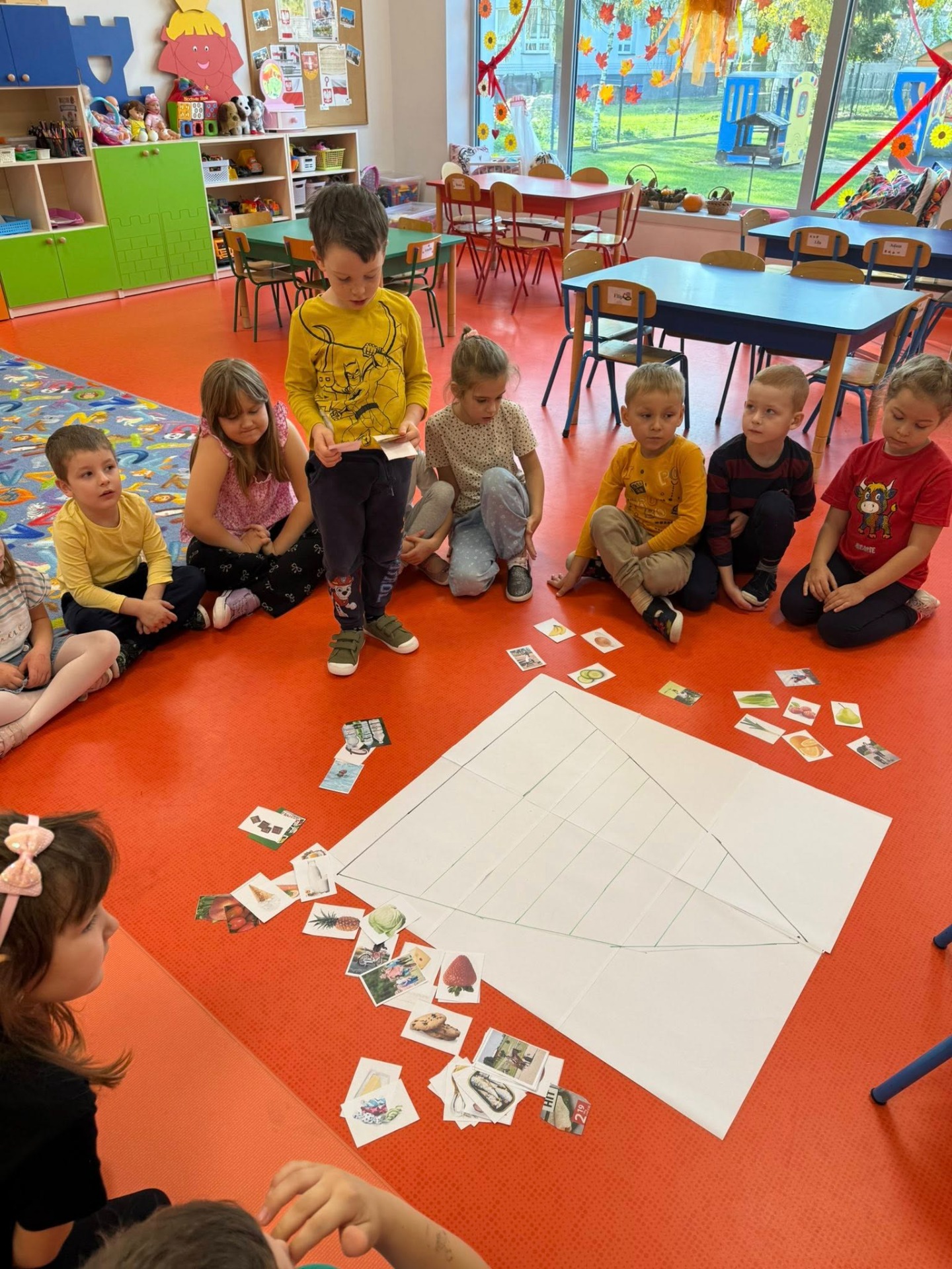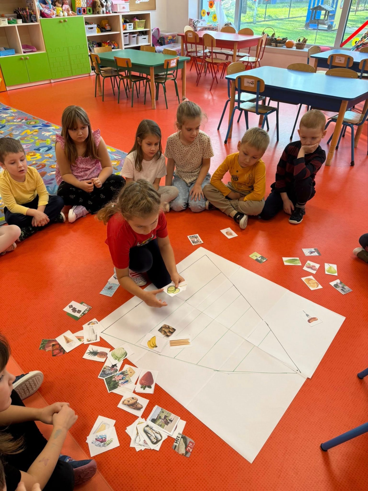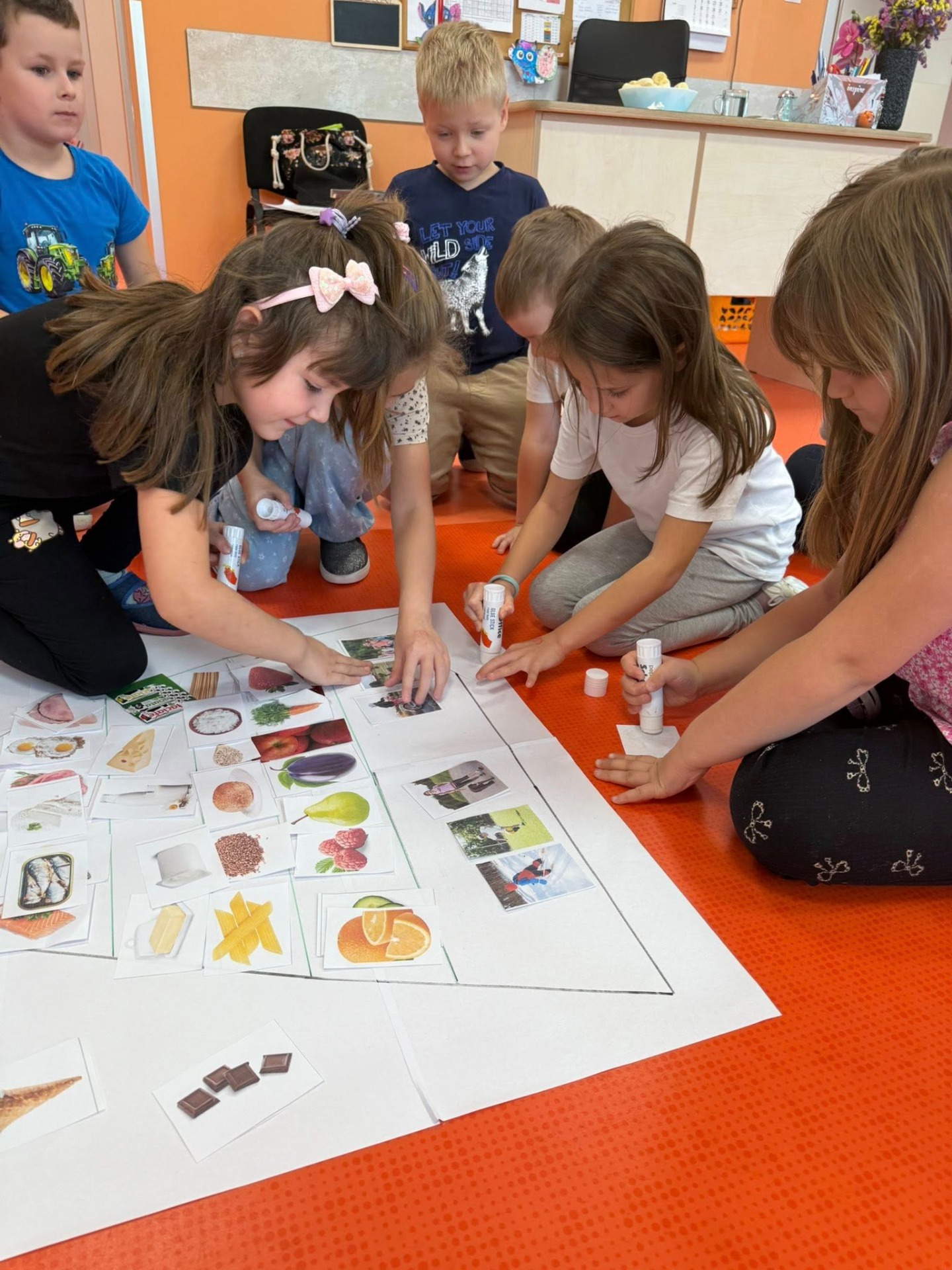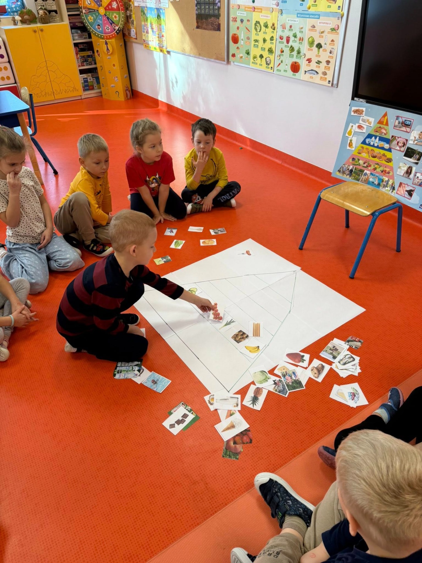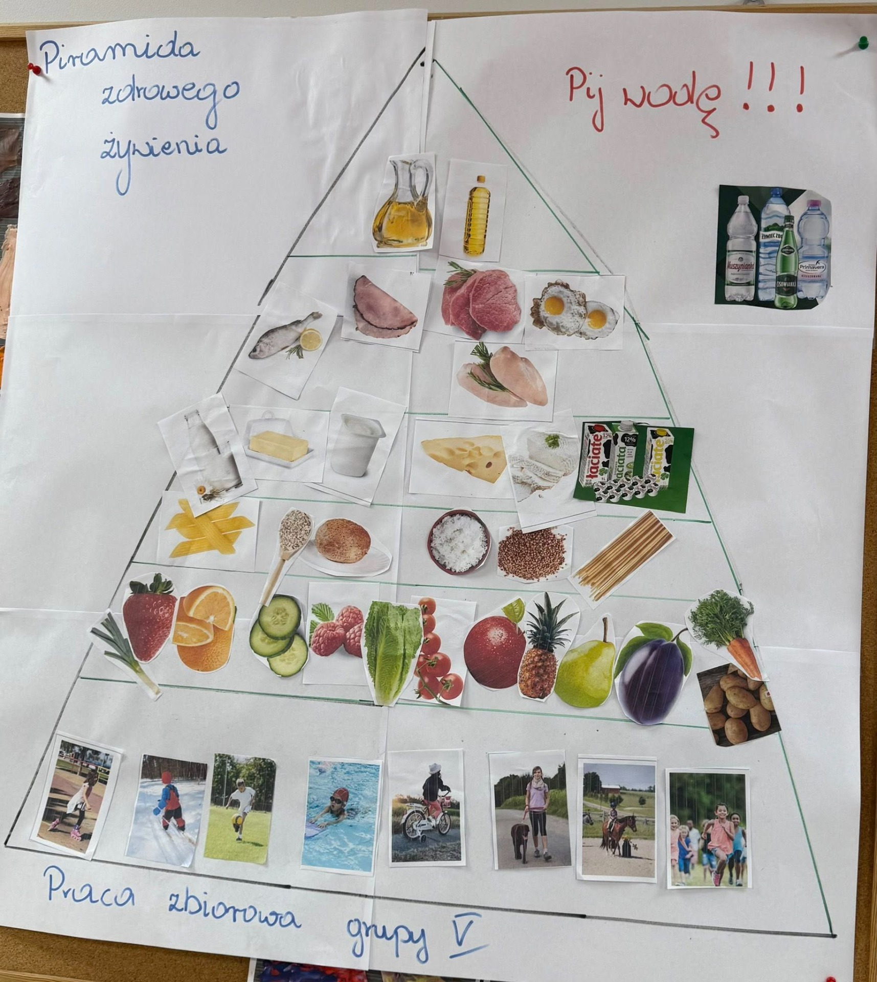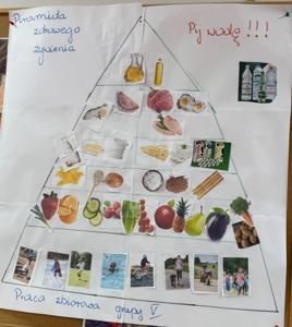 Razem omówiliśmy piramidę zdrowego żywienia, a następnie wykonaliśmy swoją własną wersję tego kolorowego plakatu.