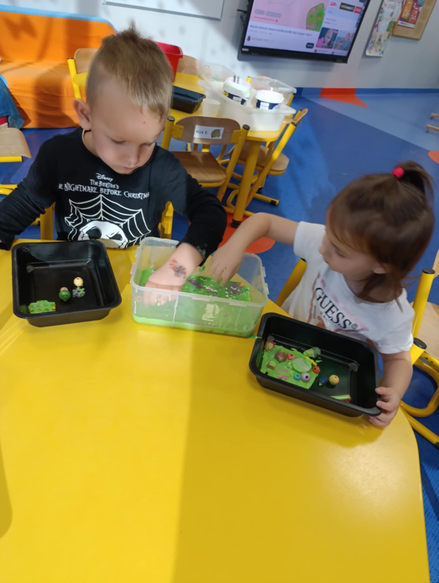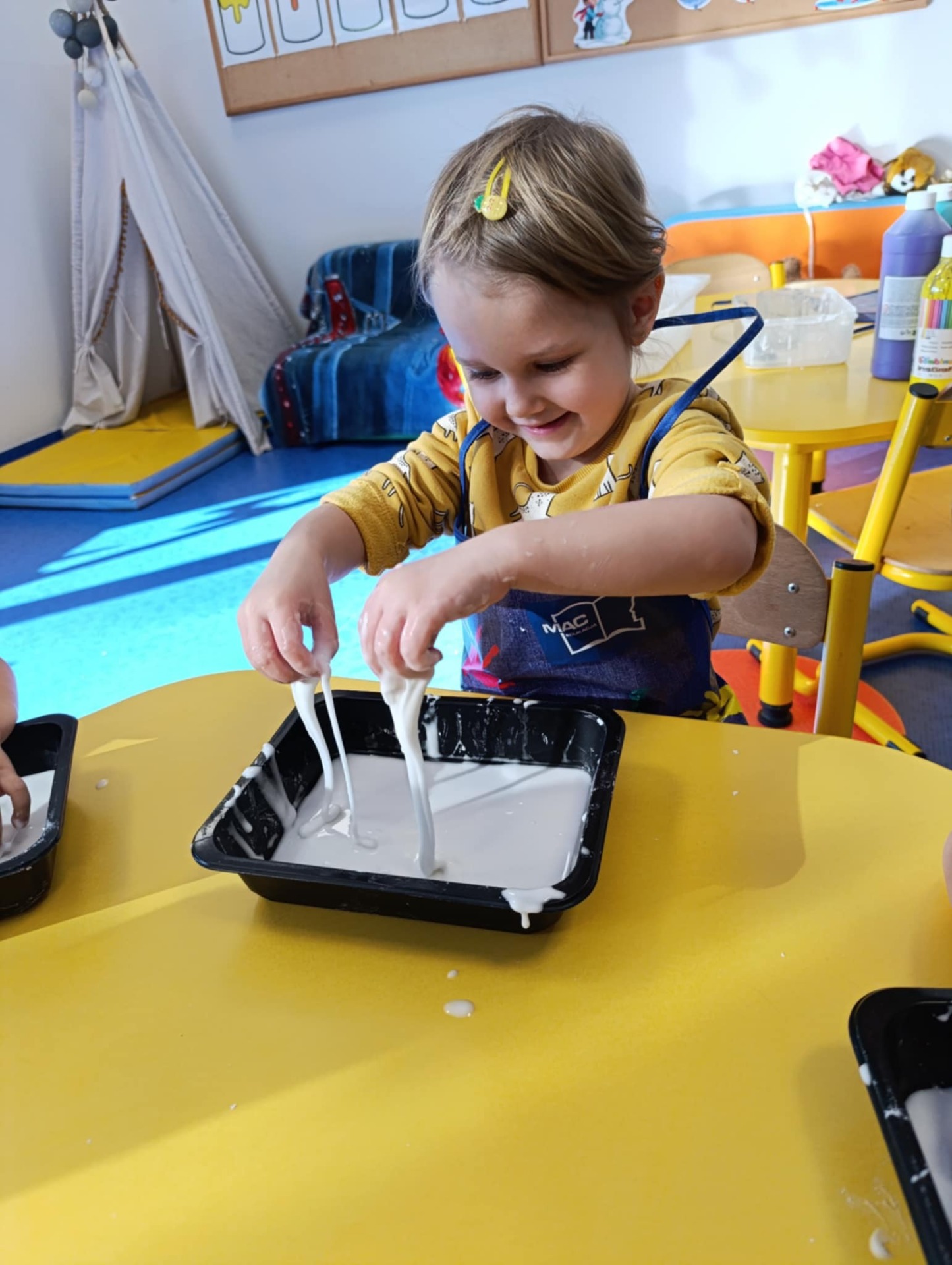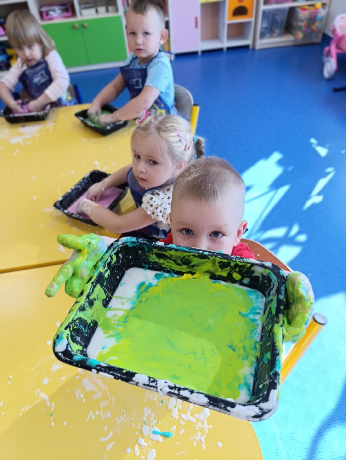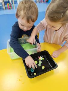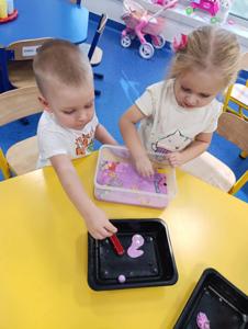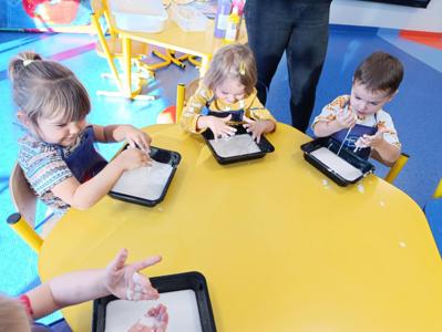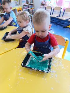 Takie zabawy sensoryczne to nie tylko frajda, ale też nauka przez doświadczanie- a tego w naszym przedszkolu nigdy nie brakuje!