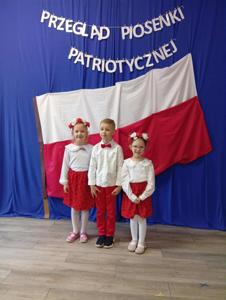 Hania, Madzia oraz Wiktor z gr IV zaśpiewali piękną piosenkę pt: Polska moje miejsce.