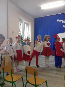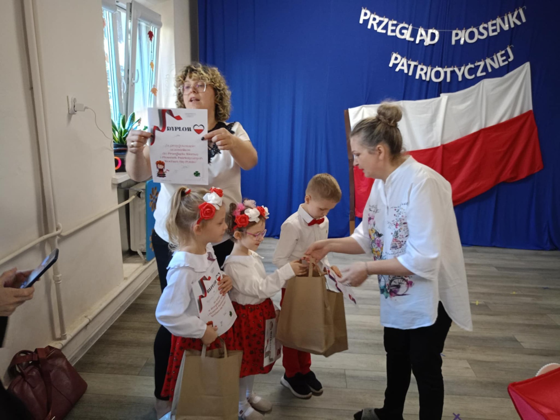 W dniu 07.11.2025 dzieci z naszego przedszkola wzięły udział w Przeglądzie Piosenki Patriotycznej , który odbył się w Przedszkolu Miejskim nr 233 w Łodzi.