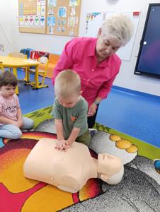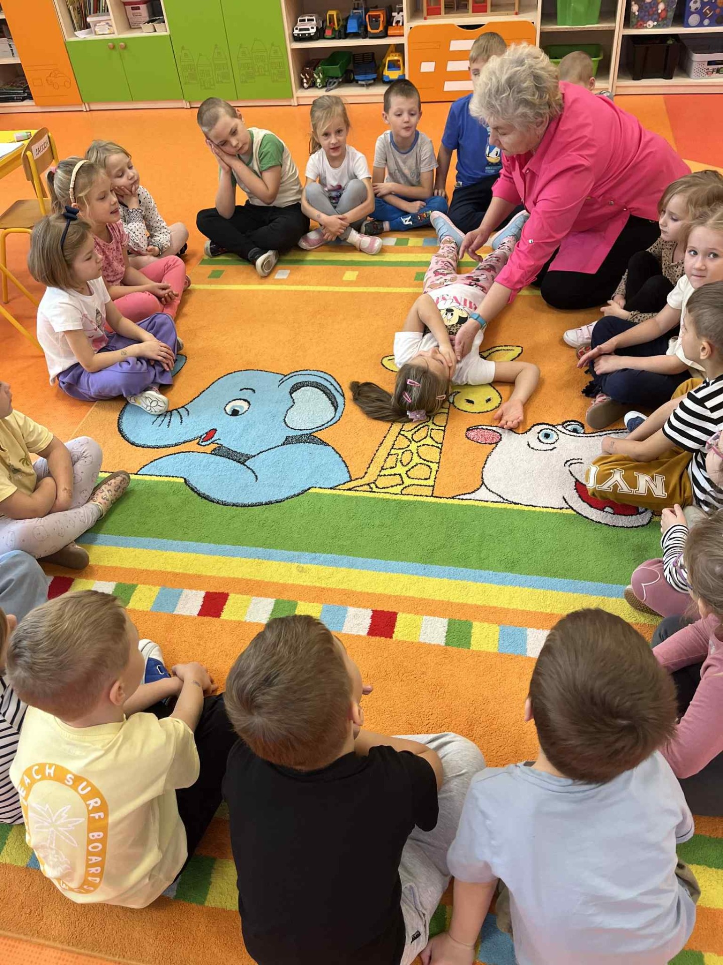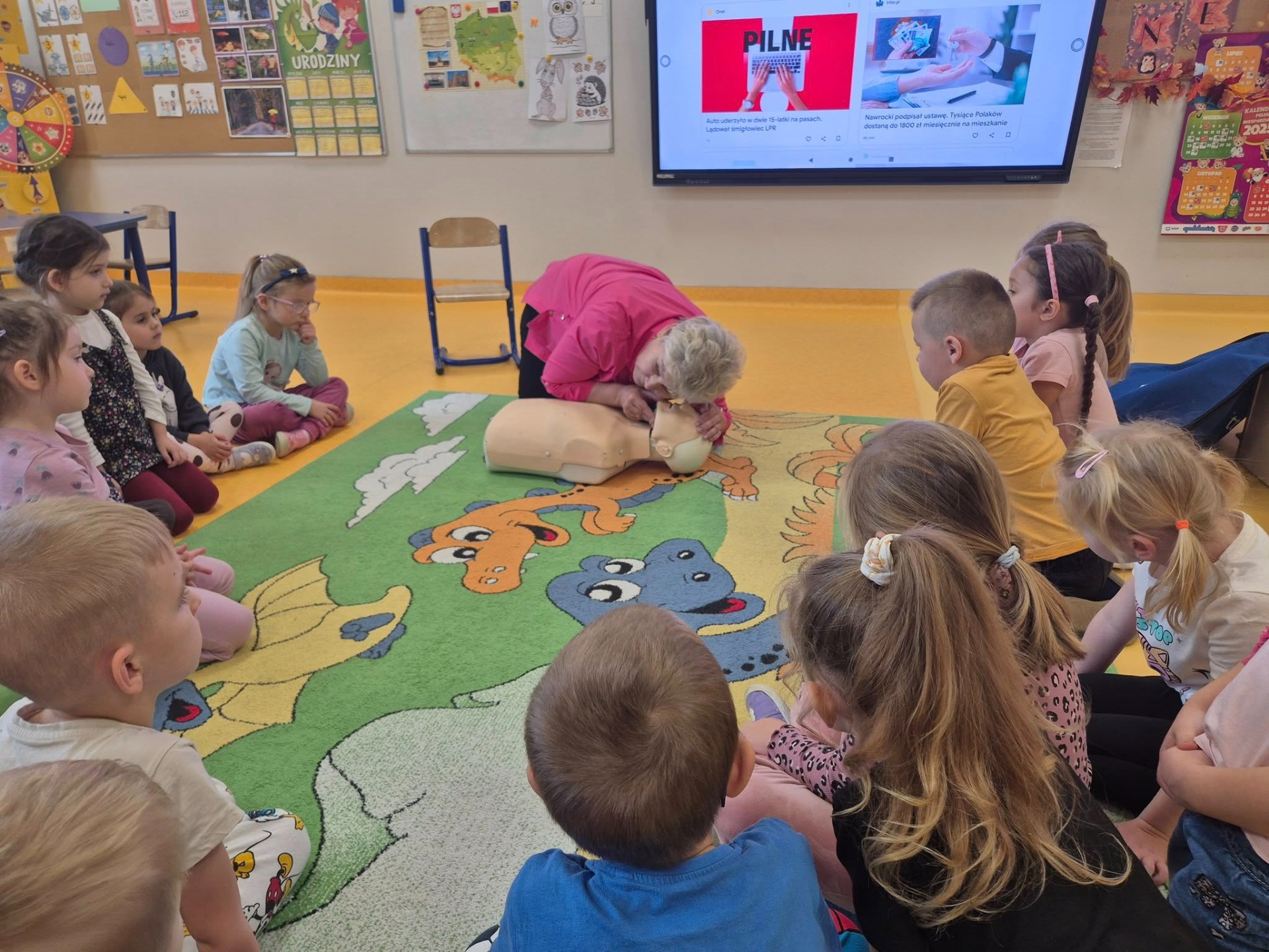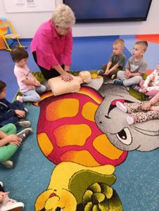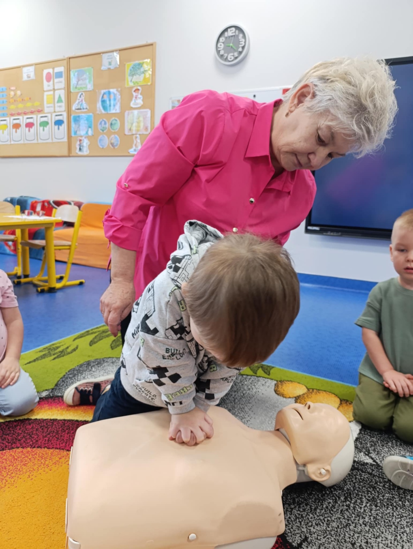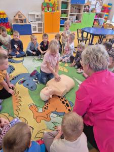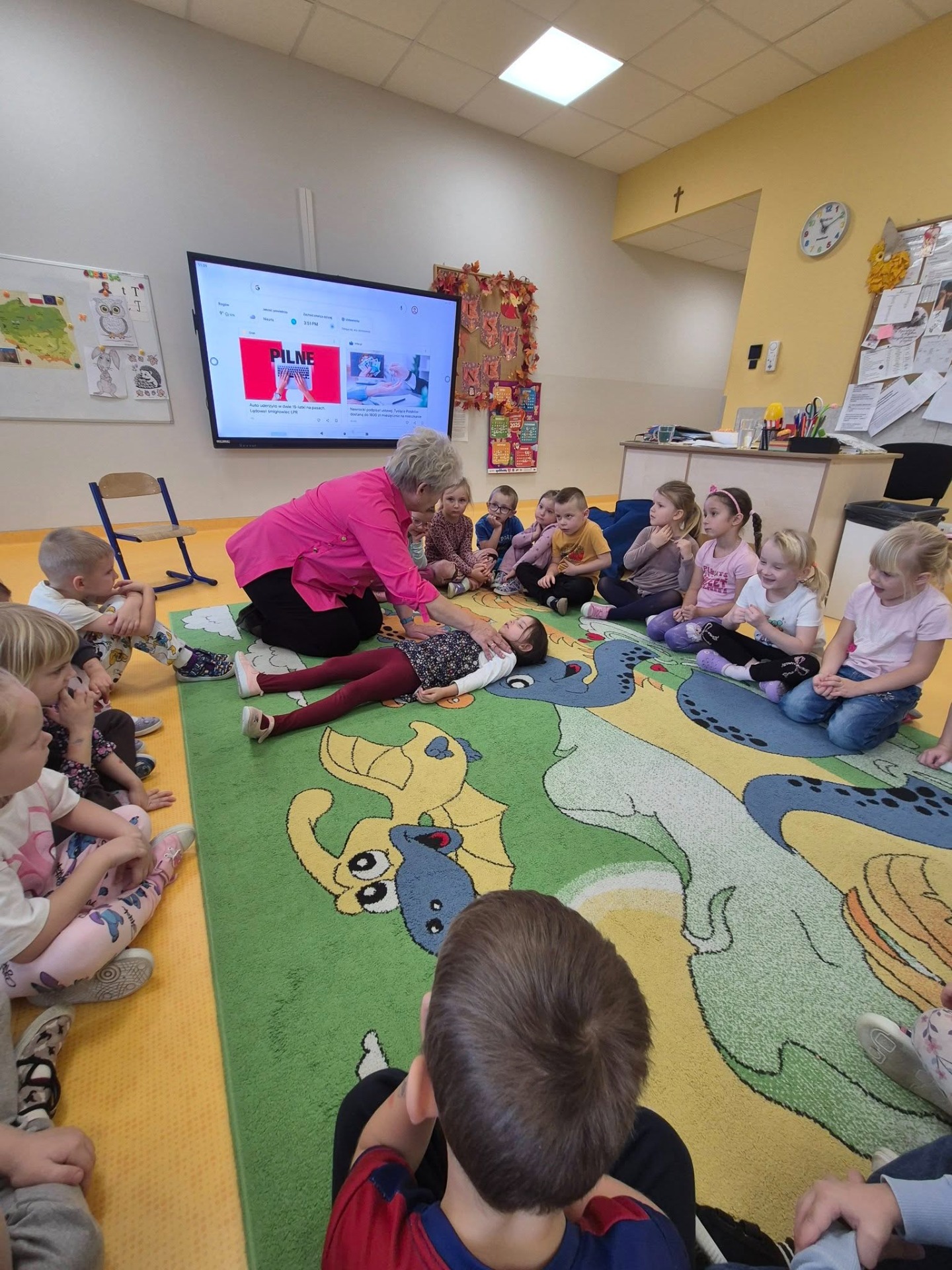 Czy wiesz, że możesz komuś pomóc zanim przyjedzie pogotowie ratunkowe? Zawsze trzeba pamiętać o tym, by w takiej sytuacji zachować spokój. Nasze przedszkolaki w piątek miały okazję poćwiczyć jak udziela się Pierwszej Pomocy. Takie ćwiczenia mogą pewnego dnia uratować komuś życie, dlatego tak ważne jest, żeby od najmłodszych lat uczyć dzieci prawidłowych zachowań podczas udzialania pomocy. Dziękujemy bardzo Cioci Eli Zarębskiej za tak ważną lekcje.