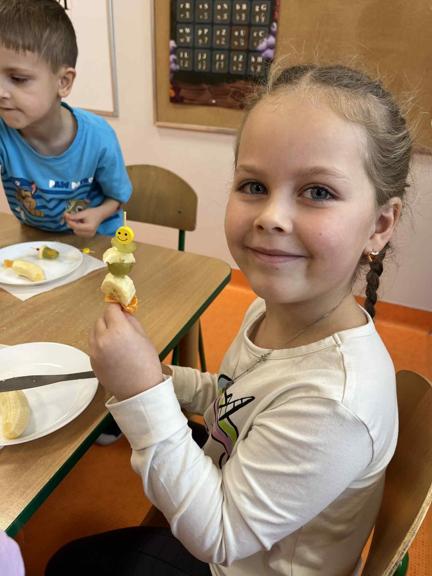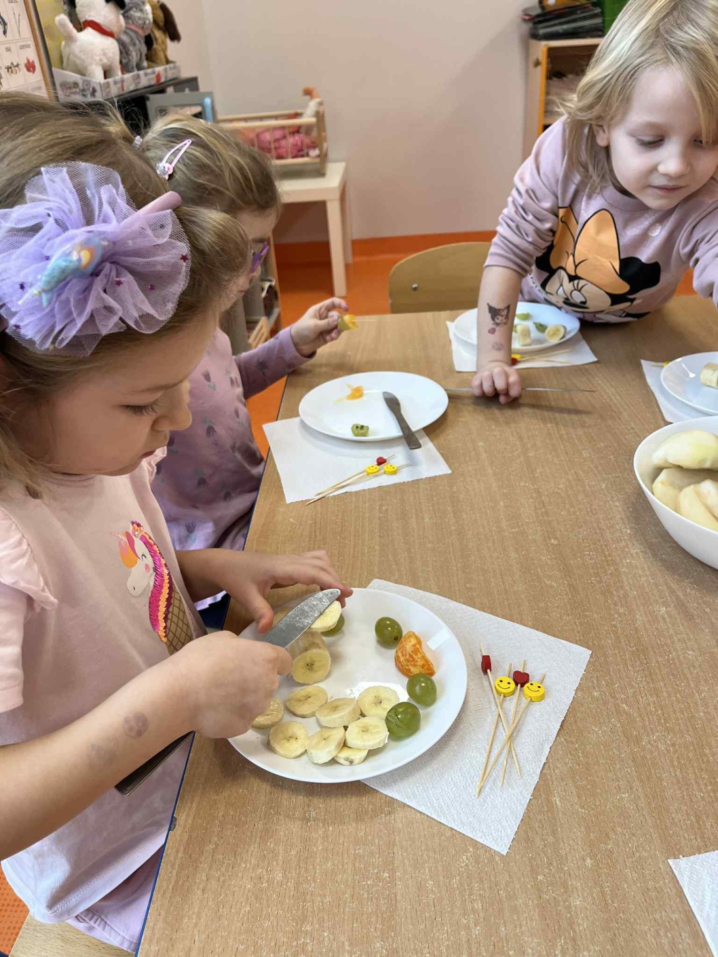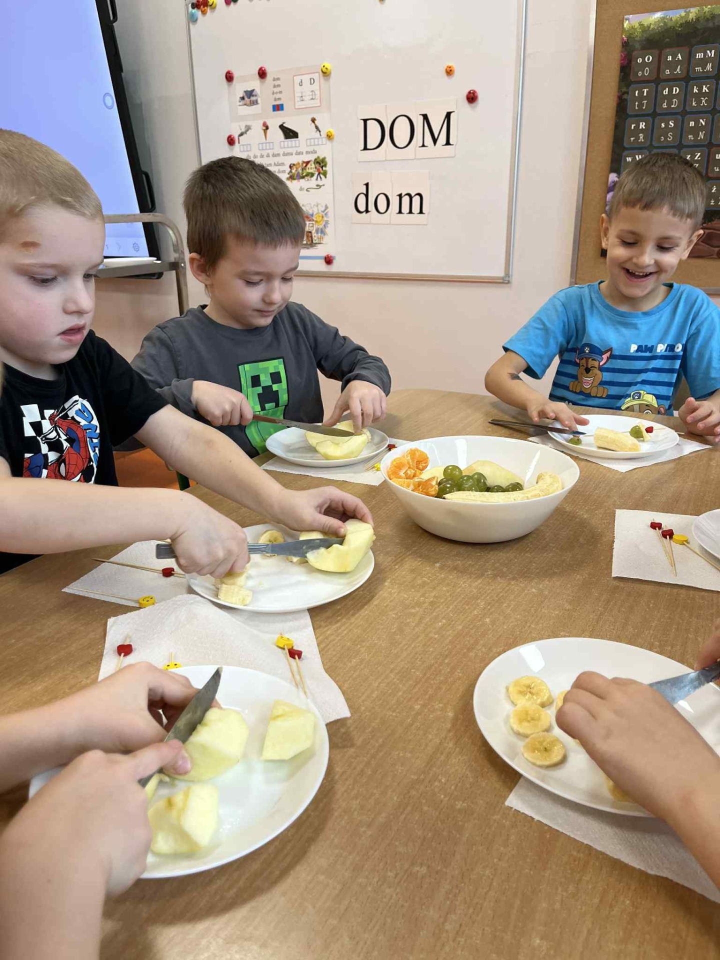 Koreczki owocowe gr IV Owocowe koreczki gr.IV Czy to jabłko , czy to gruszka chętnie wskoczą mi do brzuszka. Może Śliwka? Banan też. Chcesz być zdrowy? Wszystko zjesz! Zdjęcia Zobacz również Filharmonia na kółkach Grupa I - malowanie na folii Zabawa badawcza w grupie III Koreczki owocowe gr IV Zdrowy styl życia - gr IV Lekcja WF w przedszkolu 24 listopada 2025 Aktualności Wydrukuj Udostępnij Wyświetlono: 3