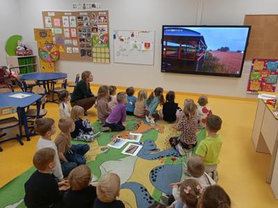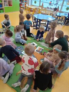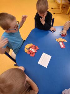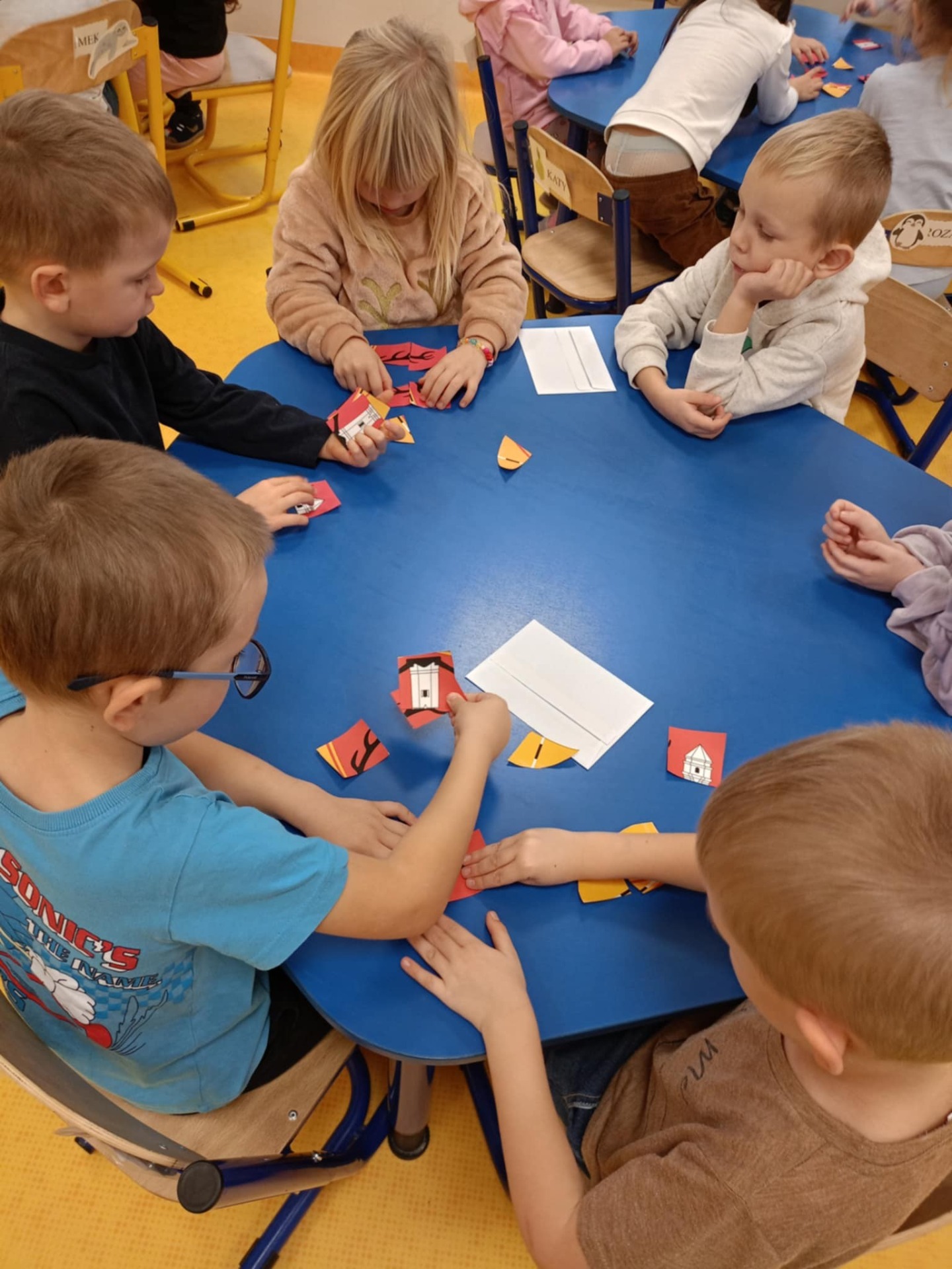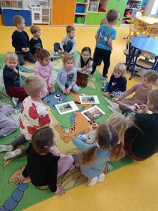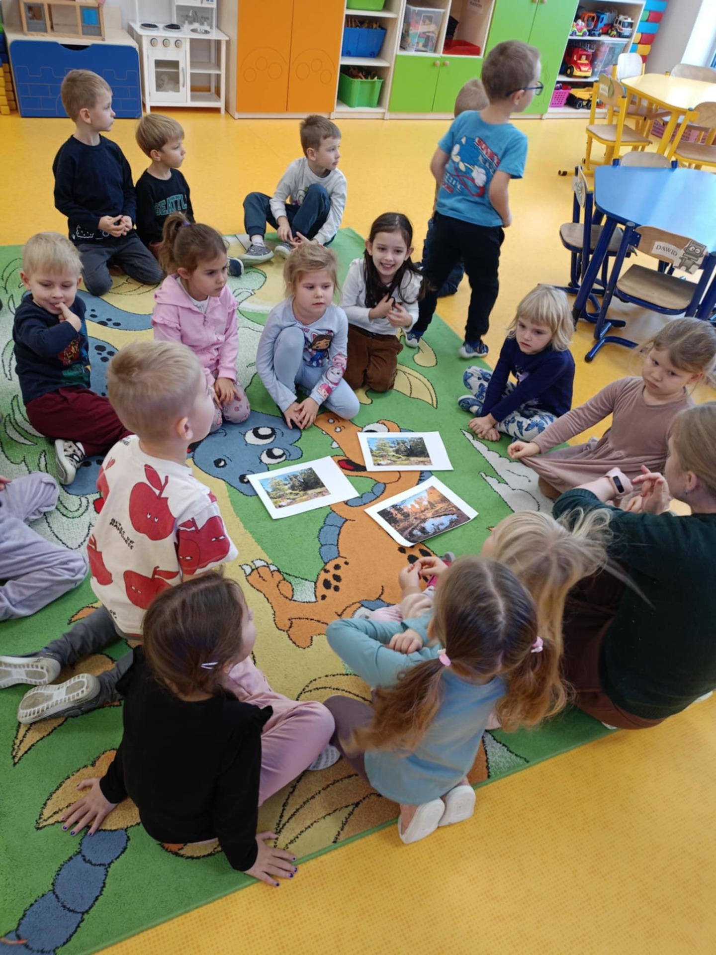 Dzisiaj grupa III poznawała swoją okolicę - małą ojczyznę. Dzieci rozpoznawały herb Rogowa, wskazywały ciekawe miejsca w naszej miejscowości takie jak Arboretum Kolejka wąskotorowa, Wieża Ciśnień. Przypomniały sobie także swoje adresy , co niektórzy pamiętają nawet numery ulicy i domów.