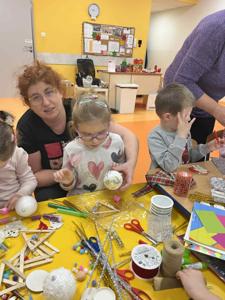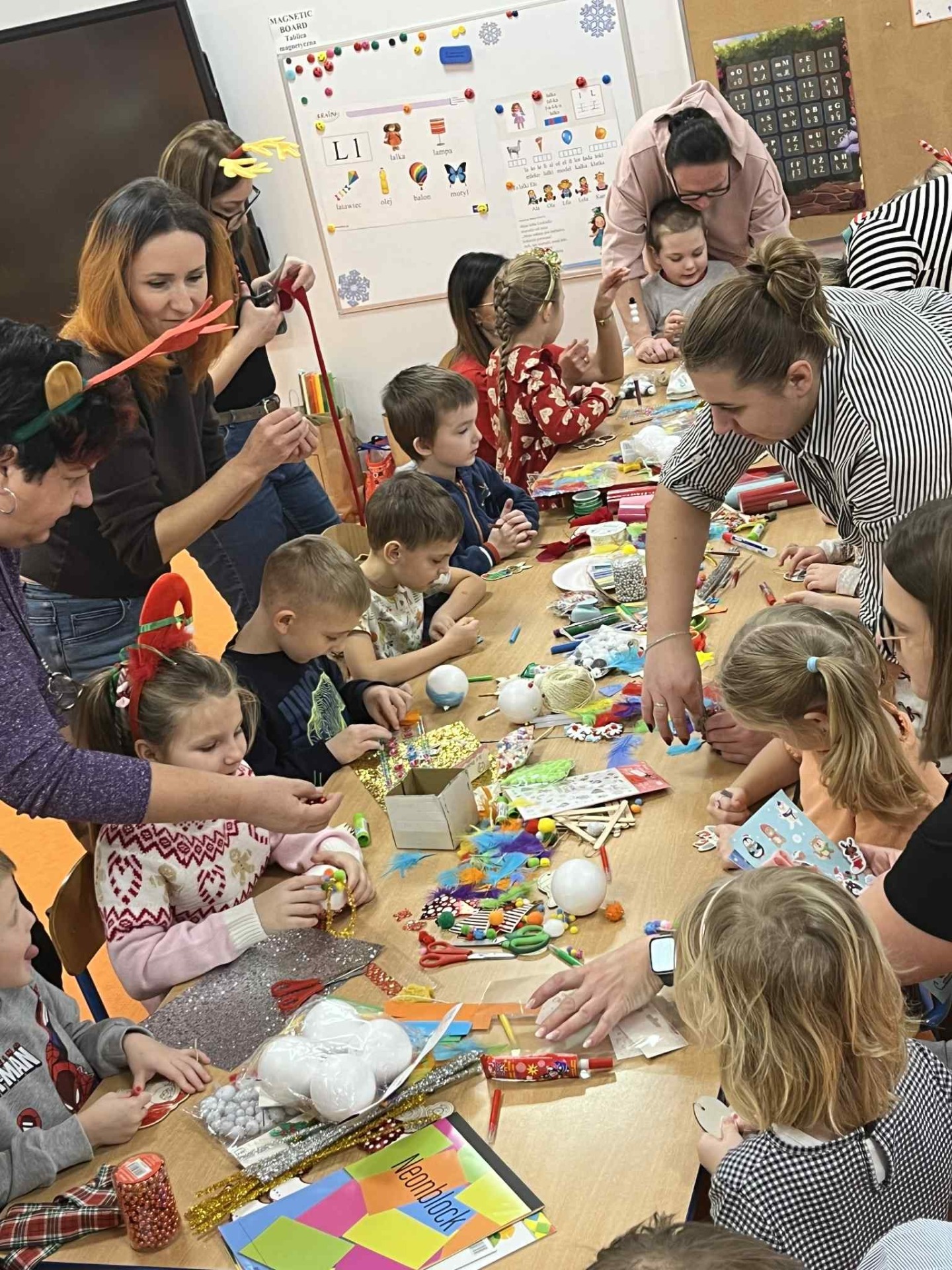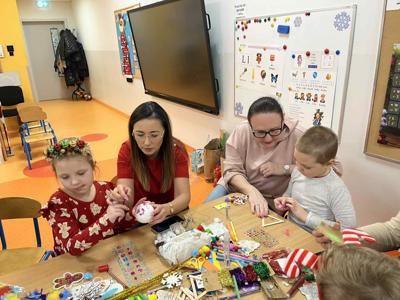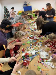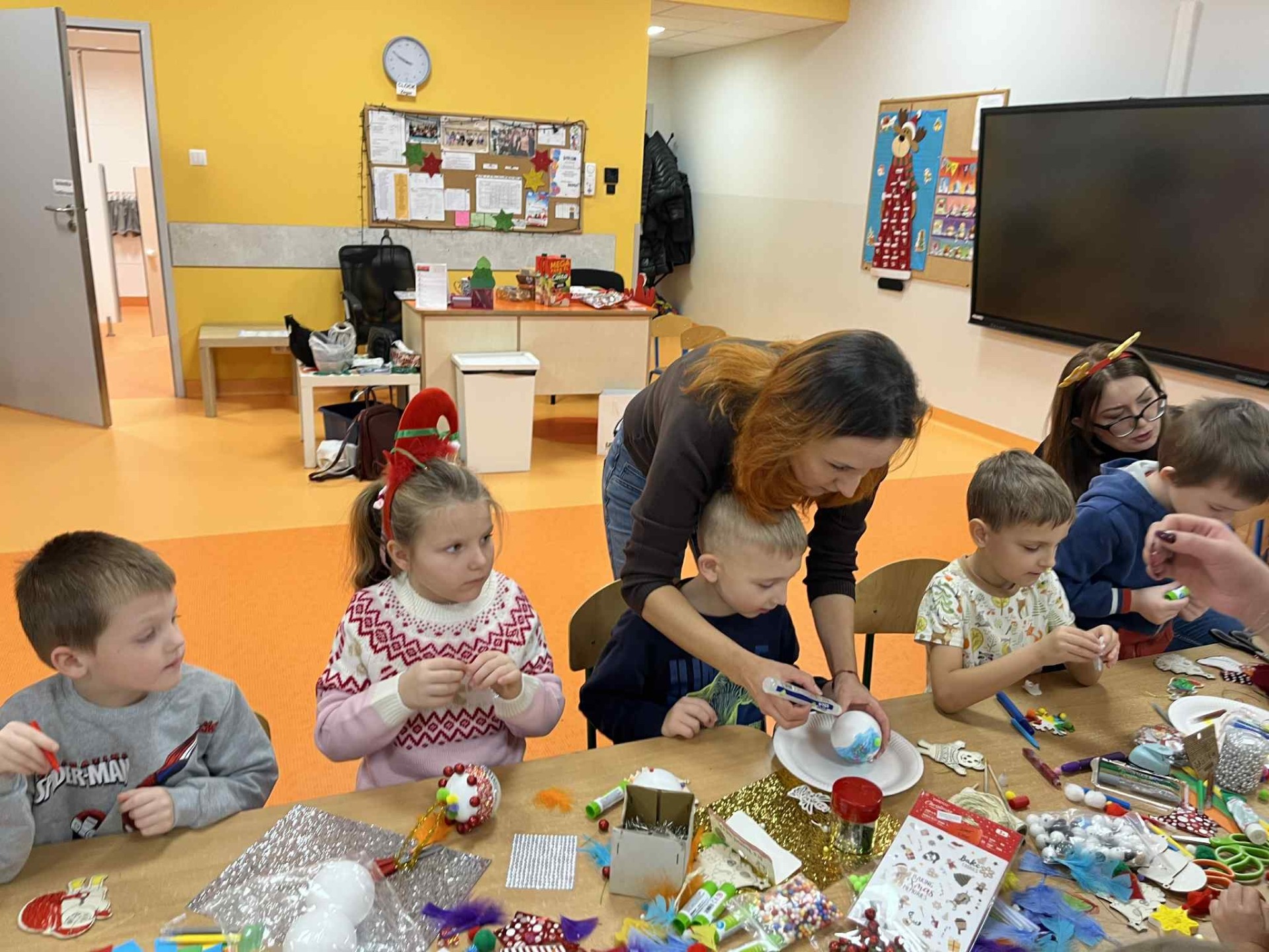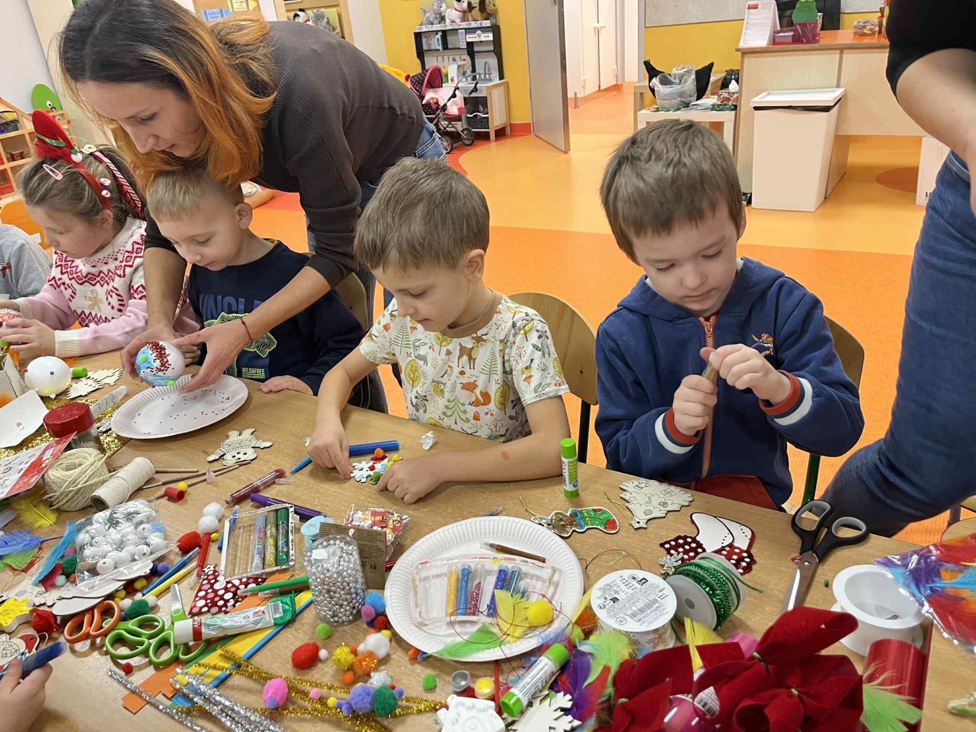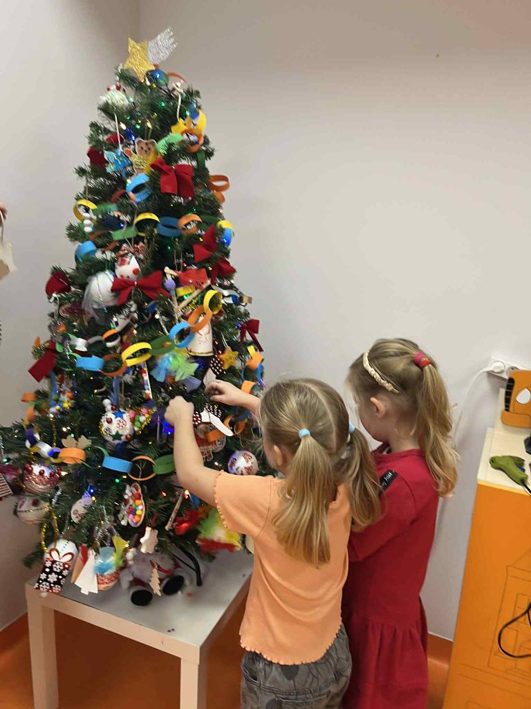 3 grudnia grupa IV gościła w swojej sali rodziców , którzy byli współorganizatorami warsztatów świątecznych . Podczas spotaknia dzieci wspólnie z rodzicami projektowali ozdoby choinkowe : bombki, przywieszki, łańcuchy itp. Na zakończenie spotkania dzieci wspólnie z rodzicami ubrały swoją grupową choinkę.
