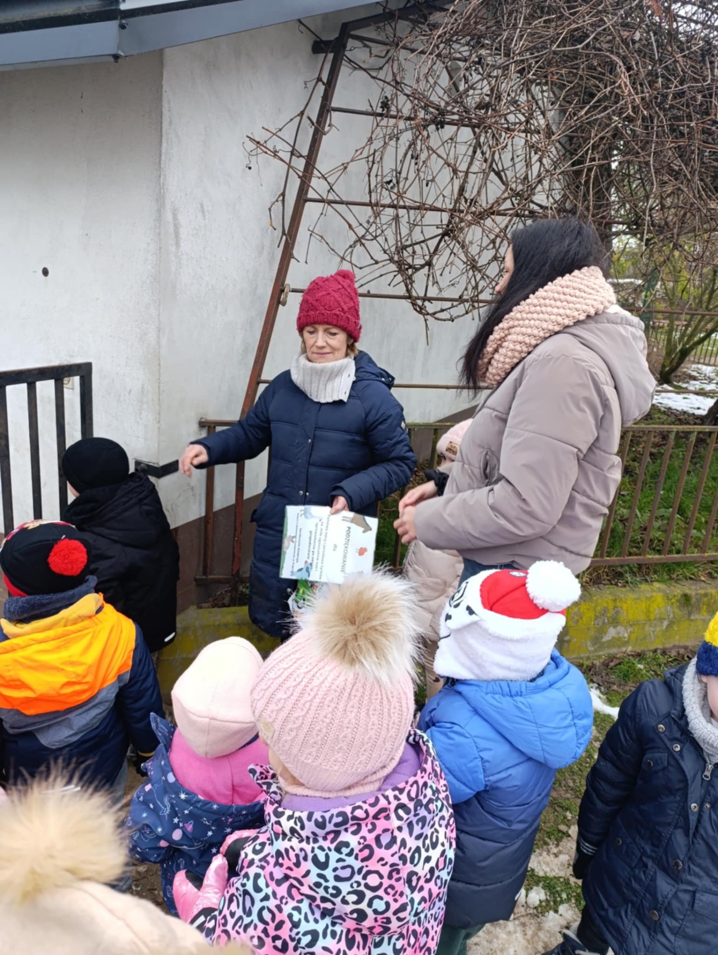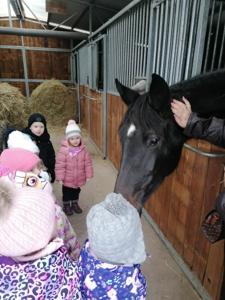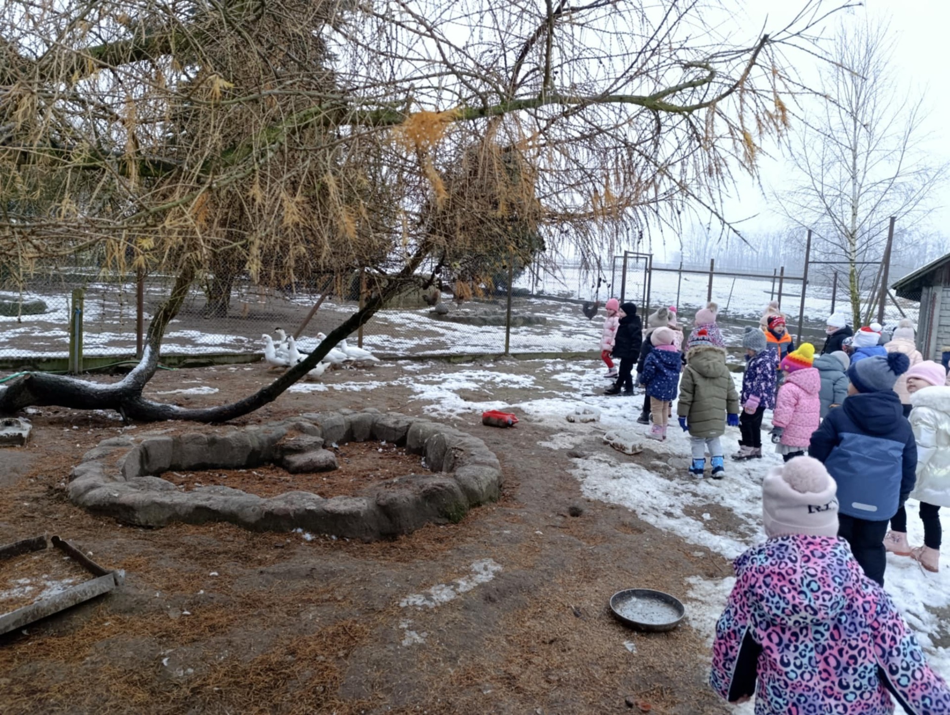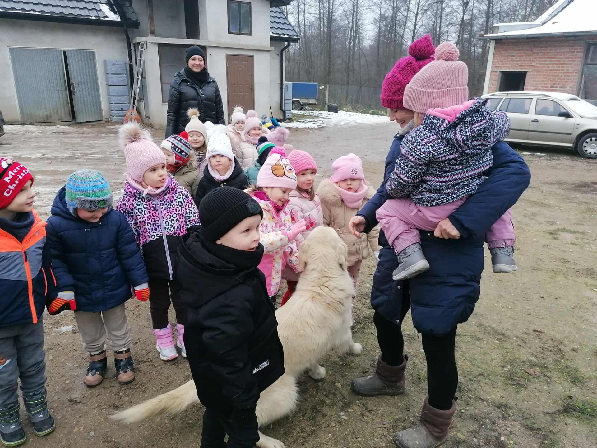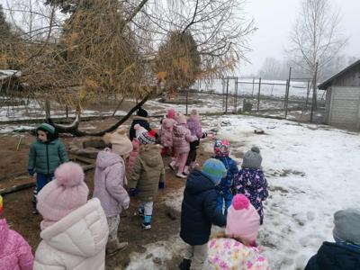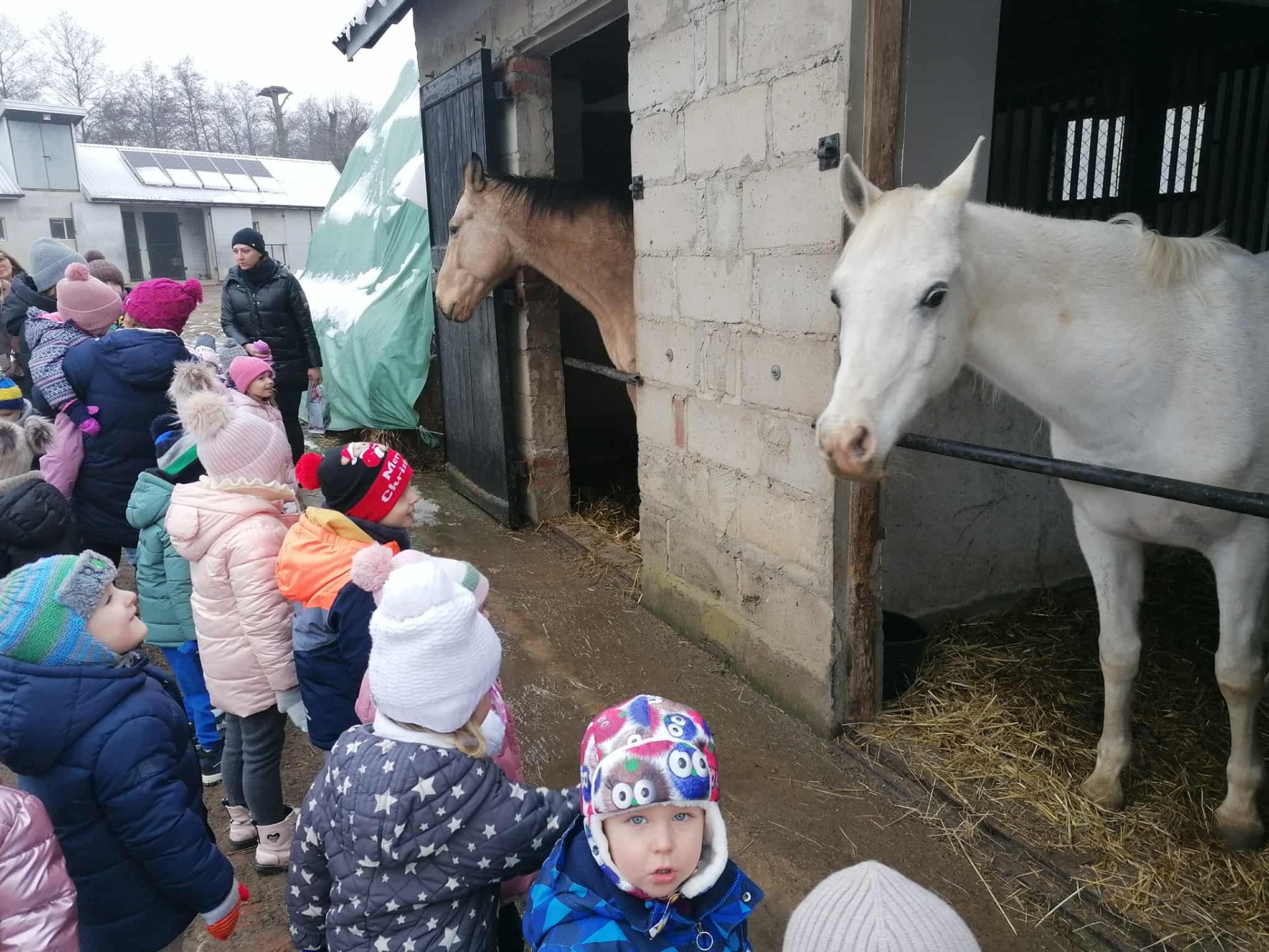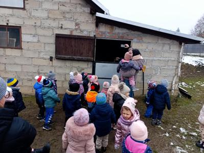 2 grudnia dzieci z grupy I i II wybrały się na wycieczkę do gospodarstwa w Mrodze Górnej. Podczas spaceru dziecio obserwowały zwierzęta , które zamieszkują gospodarstwo . Poznały zwyczaje koni , psów , gęsi . To była pierwsza wycieczka autokarowa naszych najmłodszych przedszkolaków z grupy I , teraz już wiemy że dzieci są gotowe na dłuższe wyjazdowe wycieczki. Zostaliśmy zaproszeni przez p. Inez i Jarosława Syrek na wiosenne zwiedzania , wtedy więcej zwierząt jest na wybiegu . Serdecznie dziękujemy za możliwość zwiedzenia gospodarstwa .