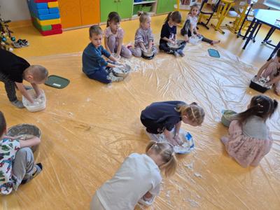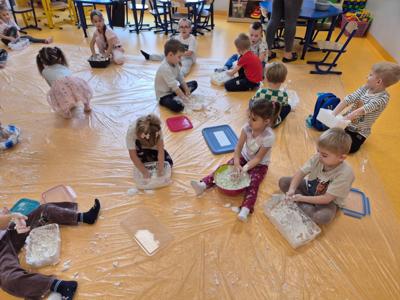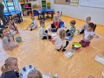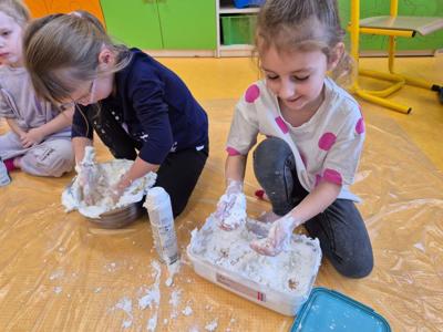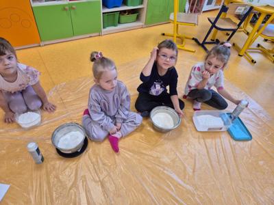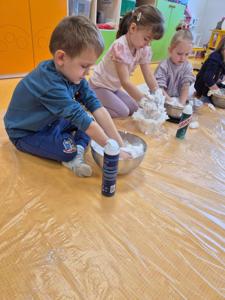 Najlepsza zabawa to taka , podczas której można się pobrudzić. Grupa III to uwielbia , więc naszą kreatywność pokazaliśmy podczas zabawy masą sensoryczną. Oj działo się działo..... Najważniejsze ,że na koniec wszyscy razem wzięliśmy udział w sprzątaniu i po 15 minutach śladu nie było w co się bawiliśmy 😛 Do odważnych świat należy .