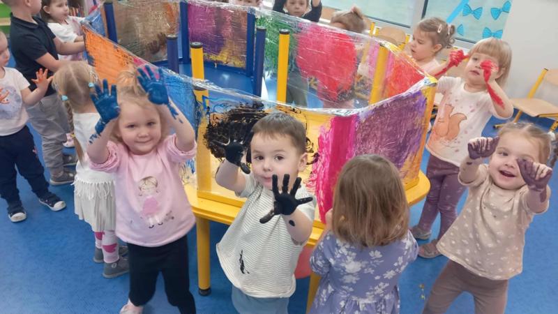 24 listopada 2025 Aktualności Grupa I - malowanie na folii Malowanie na przezroczystej folii stretch to nie tylko unikalny efekt wizualny, ale przede wszystkim wspaniale ćwiczenie sensoryczne. Elastyczna, gładka powierzchnia i intensywne kolory farb angażują... Czytaj więcej